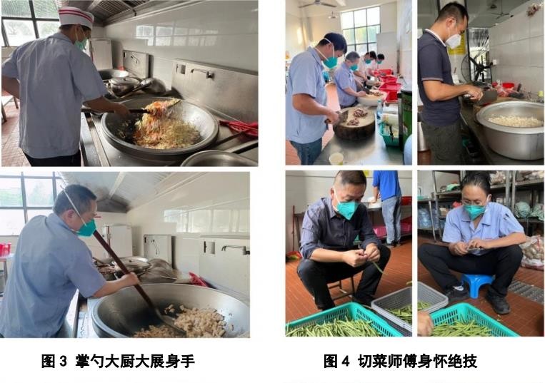 面對突發的疫情,住宿的員工就地封控4天,限制出入,按照疫情排查工作的統一部署,一波又一波的社區、街道各部門工作組頻繁到訪,旨在將公司與疫情區域剝離開來。基于公司對疫情形勢的準確預判,餐廳儲備了豐富的食材和充足的生活用品。從封控的第1天開始已經做好了住宿員工餐食的有序計劃,嚴格按照林總的要求保證正餐每餐兩葷一素,營養要豐富,讓住宿員工在封控期間吃的安心。