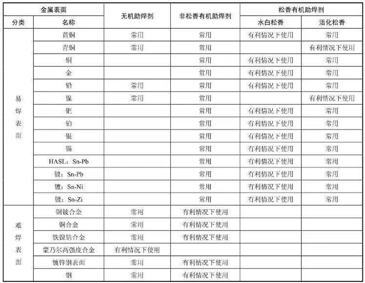 ②有利條件下使用:在表面無嚴(yán)重的銹膜或類似的污染時(shí),可用水白松香助焊劑。通常這類金屬表面可用活化松香或非松香有機(jī)材料助焊劑進(jìn)行焊接。